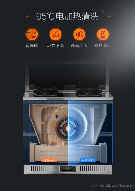 培恩集成灶還打破了煙機吸油煙的傳統方式,改為側吸。由于它們更靠近煙源,油煙在擴散之前就被吸收了。彎曲的玻璃導煙板具有更好的吸煙效果,因此不會有很多油漬附著在集成灶上。然而,中國烹飪方法不能與爆炒分開。這種烹飪方法,加上吸油煙機遠離鍋口的問題,導致油煙從鍋表面上升到有效油煙吸收范圍之外。油煙四處擴散,附著在整個廚房,大大增加了日常清潔負擔。