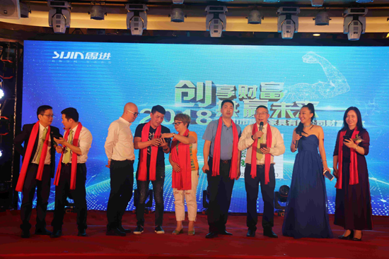 2018年3月27日,思進家具以《創享財富、共享未來》為主題的宴會在世界燈都古鎮國貿酒店華麗舉行,行業頂級設計師許照明先生和全國各地經銷商齊聚宴會現場,共同見證這場震憾人心的財富盛宴!