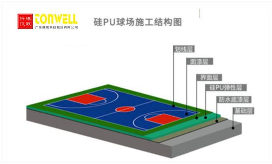 硅PU彈性運動場鋪裝材料是一種符合人體工學原理并滿足運動所需物理、機械特性需要的,健康型專業彈性合成球場面層材料系統。
