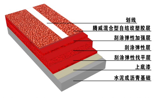 混凝土基礎混合型自結紋塑膠跑道施工流程