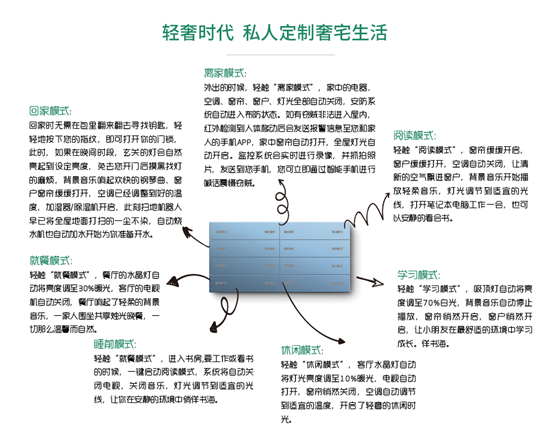 簡舒智能家居汲取國際先進設計理念,緊跟世界時尚潮流,追求健康、時尚、品質的設計風格,為推動中國智能家居行業的發展,樹立行業標準形象而不懈努力。簡舒智能家居系統在選材、工藝、技術和品質方面得天獨厚,在產品創新上精益求精,始終以優質的產品和服務來贏得市場和顧客。