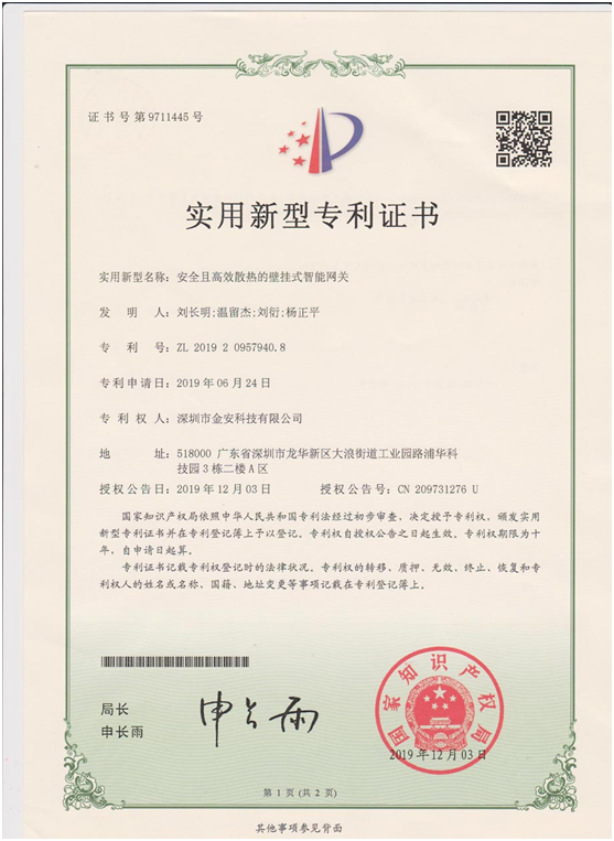 繼2019年12月初簡舒智能家居榮獲四項實用新型技術專利和一項計算機軟件著作權,再次榮獲二項實用新型技術專利,分別是:
