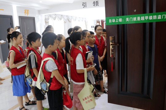 小朋友穿著印有永康日報小記者的紅色馬甲,背著一個米黃色的小書包,排著整齊的隊伍,來到樣品展廳,工作人員介紹了王力的發(fā)展歷程、企業(yè)文化和智能家居產(chǎn)品等內(nèi)容,演示了王力智能門鎖和智能小管家。