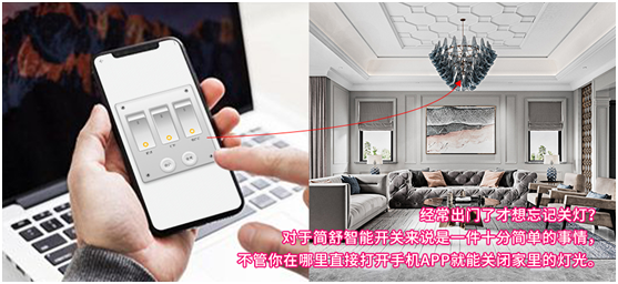 搭配簡舒的智能開關后,可不止是只能通過小度來語音控制家里的燈光哦,我們還可以用簡舒智家的手機APP來遠程控制家里的燈具哦,我們經常上班出門了,走了很遠才想起來忘記關閉家里的燈光,導致浪費了很多電費,其實這個對于簡舒智能開關來說,也是一件十分簡單的事情,直接打開手機APP,就能遠程關閉你家里的燈光,不管是你已經回到了公司,還是出遠門旅游,在全世界的各個角落,只要你的手機有網絡就能控制家中燈光的開關,手機APP也會24小時實時展示開關的狀態,不用再擔心家里的燈光到底有沒有關閉,是不是瞬間就解決了你容易忘記關燈的煩惱,讓你的生活變得更加愉快?