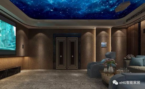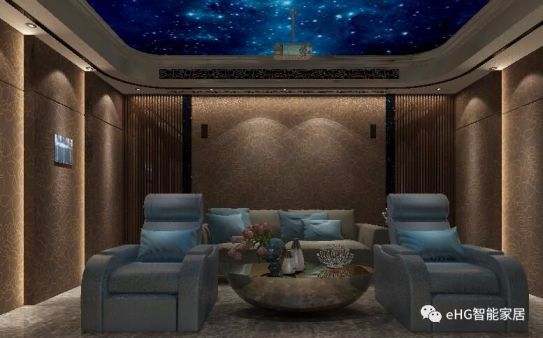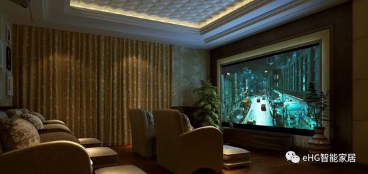 影音室再配以高端,與室內設計匹配的壁畫,座椅沙發(fā),以及主人喜愛的茶幾,各類配飾。時尚前衛(wèi)的智能影音室便新鮮出爐了。