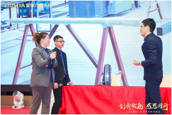 緊接著,答謝會迎來了最為激動人心的時刻——皇雅門窗系統2022新品發布會,皇雅招商中心總經理周志文先生為我們揭開2022皇雅門窗系統新品的神秘面紗!周總結合行業當下痛點及未來消費發展趨勢,引出皇雅門窗的品牌定位及產品優勢。他還為大家介紹皇雅門窗系統新產品融入了新的元素,除了在產品外觀上下足功夫外,還在技術上進一步突破,打造出顏值與性能俱佳的高端門窗產品。