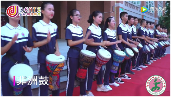 隨著手腕的輕輕揮動,跳動的音符隨之蕩漾開來,優(yōu)美動聽的旋律響徹校園,深厚靈透的曲調(diào)縈繞操場上空。由于同學(xué)們對音樂的摯愛,無可挑剔的默契配合,一首動人的敲擊樂——《茉莉花》緩緩地從他們指尖敲擊出來。而令人遐想的音效——清幽、空靈、真實可感,配合金屬的敲擊聲,則又細膩剛硬、綿延致遠,這一串串的美妙音符皆從笛馳敲擊樂器中完美地展現(xiàn)出來。