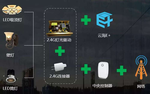 智能升級(jí)方案二:在燈光驅(qū)動(dòng)中植入2.4G模塊,對(duì)燈具進(jìn)行智能化升級(jí),實(shí)現(xiàn)調(diào)光與調(diào)色