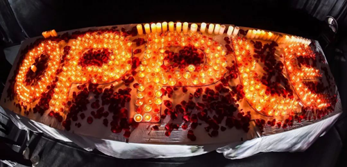 傳燈儀式上,由蠟燭點亮的“OPPLE”。