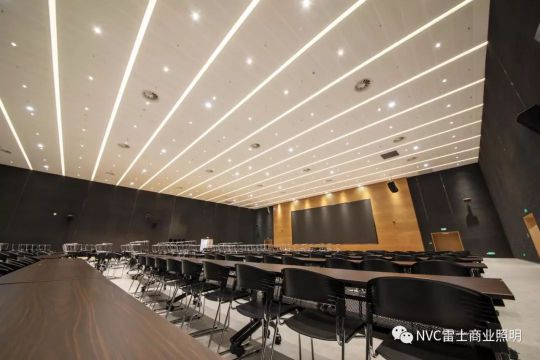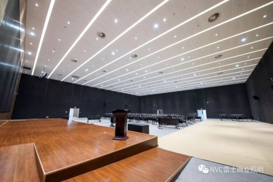 會議大廳和政務大廳則在此基礎上增加了嵌入式筒燈照明,呈現更高亮度且更均勻的光環境。
