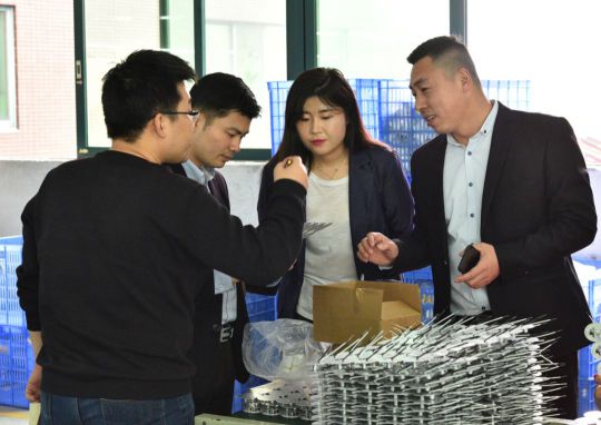 ▲ 華為海思、海令科技、暗能量電源高管參觀制造現(xiàn)場。