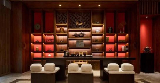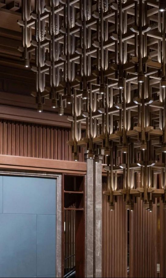 據設計師介紹,由于酒店室內采用了中式古典風格的裝潢設計,大量運用我國傳統木構架建筑室內的藻井、天棚、掛落的構成和裝飾,由朱砂、赭石、酞青藍、胭脂、藤黃為主色系,其內部泛著濃郁的東方古國色彩,因此,酒店的照明設計也相應采取了匹配的光影投射形式,通過效仿水墨畫中的點、染、潤的寫意技巧來處理光影,從而獲取既飽滿又不失柔和的光彩;同時將所有的照明燈具盡量隱匿,只取華麗的效果,以“潤物細無聲”的手法傳遞出中式古典風格的精致、儒雅,進而為賓客們帶來獨屬酒店儀態萬方的東方妝容。