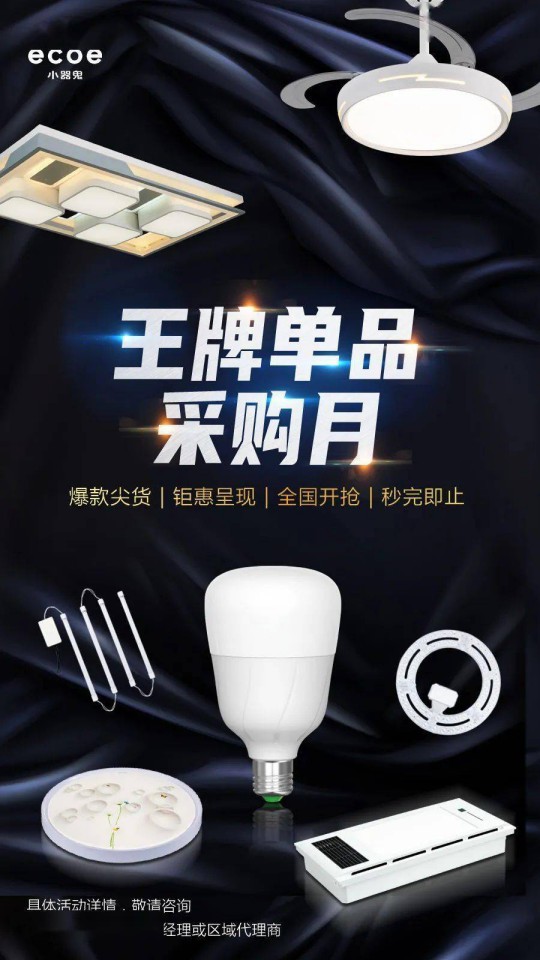 據數據顯示,2019年小器鬼家居照明類產品銷量占比32.9%,僅次于光源類產品,其中,吸頂燈、客廳燈、臥室燈尤其受到消費者喜愛,市場開拓潛力無限!“百店千店”項目的推出,正是對家居類產品推廣的進一步深化及擴張!以求構筑品牌發展新優勢,全力打造多品類陣營,為廣大合作的經銷商、終端網點搶占更多市場份額。