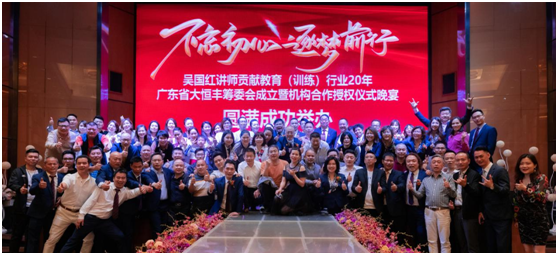 3月13日晚上,主辦方深圳大健康產(chǎn)業(yè)有限公司聯(lián)合協(xié)辦方恒保企業(yè)在廣州市海珠區(qū)稻香酒家(盈熙店)隆重舉辦了一場(chǎng)晚宴。本次晚宴以“不忘初心,逐夢(mèng)前行”為主題,慶祝吳國(guó)紅講師貢獻(xiàn)教育(訓(xùn)練)行業(yè)20年、廣東省大恒豐籌委會(huì)成立以及雷鋒雜志社東莞站對(duì)吳國(guó)紅講師和大恒豐(籌)戰(zhàn)略合作授牌儀式。