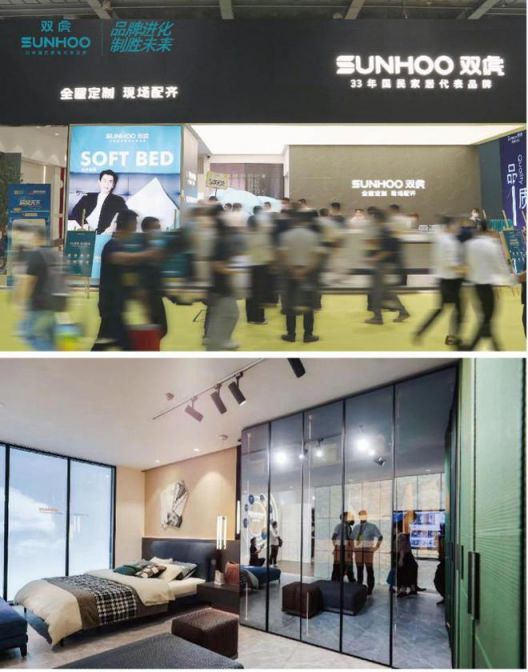 目前雙虎旗下?lián)碛邪迨教追考揖摺?shí)木家具、床墊、沙發(fā)、木門、窗簾和全屋定制等上百個(gè)系列,上萬(wàn)個(gè)SKU,品類完整,風(fēng)格齊全,幾乎可以現(xiàn)場(chǎng)配齊消費(fèi)者新家裝修布置的全面需求。