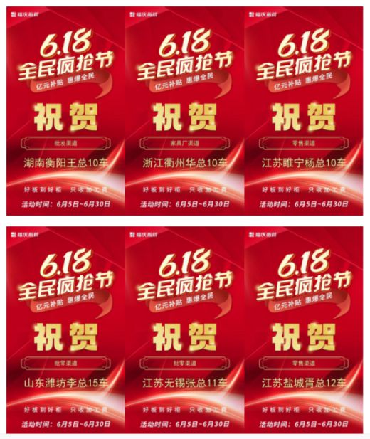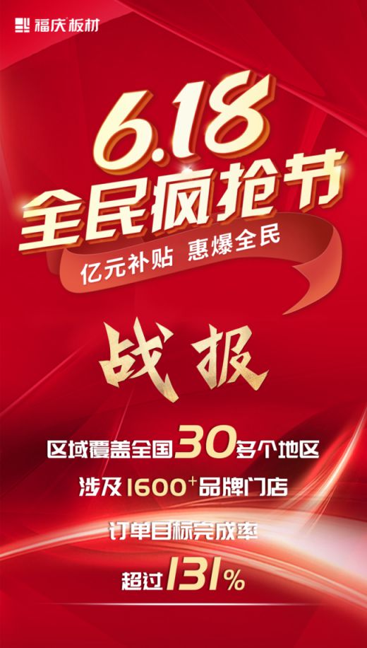 激情六月,福慶板材總部發(fā)起了“億元補(bǔ)貼,惠爆全民”活動(dòng)。整合集團(tuán)億元級(jí)資源,投入補(bǔ)貼終端經(jīng)銷商,激發(fā)板材市場活力,順利完美收官。