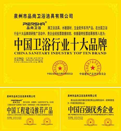 品尚衛(wèi)浴獲多項(xiàng)重量級(jí)國(guó)家榮譽(yù)