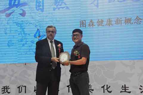 在一段關于宣偉公司的百年歷程短片之后,圖森執行董事兼總裁王維揚先生上臺,向到場嘉賓闡述了圖森的健康新概念。他認為,圖森是打造家居空間的品牌,而對任何家居空間來說,人是最核心的因素。因此,圖森的健康新概念,首先是產品健康,所以圖森推出了比油性漆更環保的水性漆產品。其次是在色彩、視覺、功能性方面的健康,圖森和戴昆老師的合作,一直非常注重原創設計。他表示,在市場趨勢和國家政策的引導之下,企業不得不為了長久發展,做出選擇。