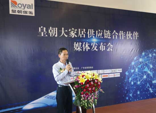 9月25日,皇朝家私舉行了皇朝大家居供應鏈合作伙伴媒體發布會。在會中,皇朝家私正式發布了皇朝大家居供應鏈合作伙伴。馬可波羅、尚高衛浴、康寶廚電、TATA木門、東鵬陶瓷、巴洛克生活家地板、歐雅壁紙、櫥立方、歐普照明、嘉寶莉油漆、藍谷智能廚房、奧普吊頂、永豪軒、唐朝樓梯、優選電器、錦繡明天等眾多一大批知名建材家居企業悉數到場,涵蓋了建材、衛浴、家具、軟裝以及智能家居等多個細分領域,吸引了廣東廣播電視臺、新浪、網易、搜狐、騰訊家居、中國家具報道、太平洋家居、鳳凰家居等一批主流媒體和行業媒體前來報道。