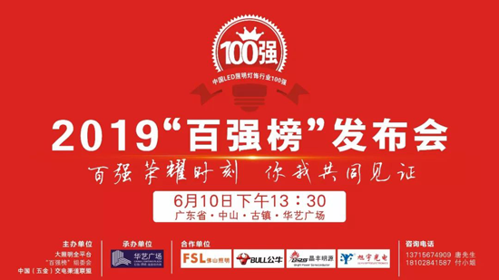 6月10日,“2018中國LED照明燈飾行業100強”榜單發布會將在中山古鎮華藝廣場盛大舉行。今年“百強榜”榜單將再次掀翻整個行業!