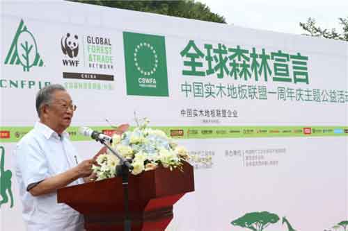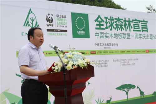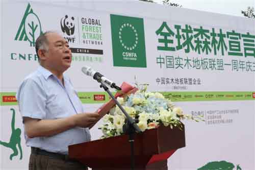 ??國家林業(yè)局原常務副部長劉廣運、WWF世界自然基金會森林項目總監(jiān)金鐘浩、安吉縣人民政府副縣長任烽、中國實木地板聯(lián)盟主席佘學彬等領導嘉賓,出席本次活動并致辭。大衛(wèi)地板作為中國實木地板聯(lián)盟執(zhí)行主席單位積極參加了此次活動,董事長蔣衛(wèi)、市場部總監(jiān)陳樂新出席此次會儀。中國林產工業(yè)協(xié)會秘書長石峰擔任主持。他們從森林與人類的關系、林產企業(yè)木種來源認證的合法性、如何發(fā)展綠色經濟等方面,闡述了本次活動的重要性和積極意義。