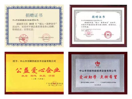 從軍旅到商海,羽順熱能陳群始終秉持軍人氣節,不忘初心,堅守心底的一方善念,守望心頭的家國情懷。多年來,他一直熱心社會公益事業,盡其所能做善事、濟危困,多次向社會捐資捐物,救災濟貧、建橋修路、贊助公益事業、建老人院、資助失學學生、為教育事業出資出力,累計捐獻物資善款上千萬元,不加附帶條件、不計任何回報,不斷用實際行動體現企業家的社會責任與擔當。