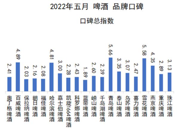 2022年6月15日,中國品牌口碑指數:2022年五月啤酒品牌口碑報告(以下簡稱《報告》)在京發布。