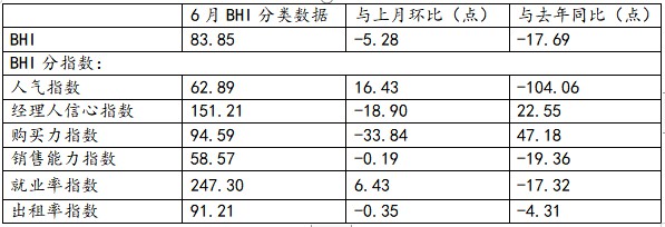 由商務(wù)部流通業(yè)發(fā)展司、中國建筑材料流通協(xié)會共同發(fā)布的全國建材家居景氣指數(shù)BHI顯示:2020年6月份全國建材家居景氣指數(shù)(BHI)為83.85,環(huán)比下降5.28點,同比下降17.69點。全國規(guī)模以上建材家居賣場6月銷售額為645.15億元,環(huán)比下降0.32%,同比下降24.84%。2020年上半年累計銷售額為2752.84億元,同比下降40.76%。