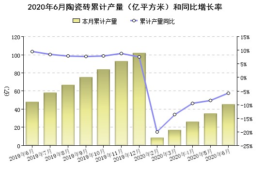 從國家統(tǒng)計局和中國建材聯(lián)合會了解到,今年上半年,全國陶瓷磚累計產(chǎn)量45.44億㎡,比去年同期降低5.78%。其中,全國陶質(zhì)磚累計產(chǎn)量12.93億㎡,比去年同期降低7.61%;瓷質(zhì)磚累計產(chǎn)量32.51億㎡,比去年同期降低5.02%。其中,第一季度全國陶瓷磚累計產(chǎn)量16.89億㎡,同比降低13.67%;第二季度全國陶瓷磚累計產(chǎn)量28.55億㎡,比去年同期上升7.41%。
