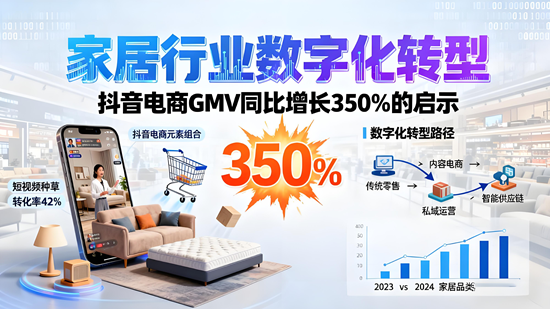 家居行業(yè)正經(jīng)歷一場(chǎng)前所未有的數(shù)字化變革,而抖音電商的崛起成為這場(chǎng)變革中最耀眼的亮點(diǎn)。數(shù)據(jù)顯示,2024年上半年,家居類目在抖音電商的GMV同比增長(zhǎng)高達(dá)350%,這一驚人數(shù)字不僅刷新了行業(yè)認(rèn)知,更揭示了數(shù)字化轉(zhuǎn)型對(duì)家居行業(yè)的深遠(yuǎn)影響。當(dāng)傳統(tǒng)家居品牌還在為如何吸引年輕消費(fèi)者而苦惱時(shí),抖音電商已經(jīng)通過(guò)創(chuàng)新的營(yíng)銷方式和數(shù)字化體驗(yàn),成功撬動(dòng)了家居消費(fèi)的新風(fēng)口。