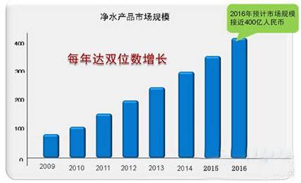 2012 年~2019,凈水機(jī)爆發(fā)增長(zhǎng)期,桶裝瓶裝水、家用凈水機(jī)、商用凈水機(jī)三分水行業(yè)市場(chǎng)格局初定,群雄混戰(zhàn),截止到2014年凈水機(jī)市場(chǎng)份額達(dá)到300億,凈水器行業(yè)有望在2019年首次突破千億大關(guān),這也意味著未來(lái)四到五年的時(shí)間是凈水器行業(yè)創(chuàng)業(yè)的最佳選擇,誰(shuí)能抓住商機(jī),誰(shuí)就能搶占市場(chǎng)盈利。